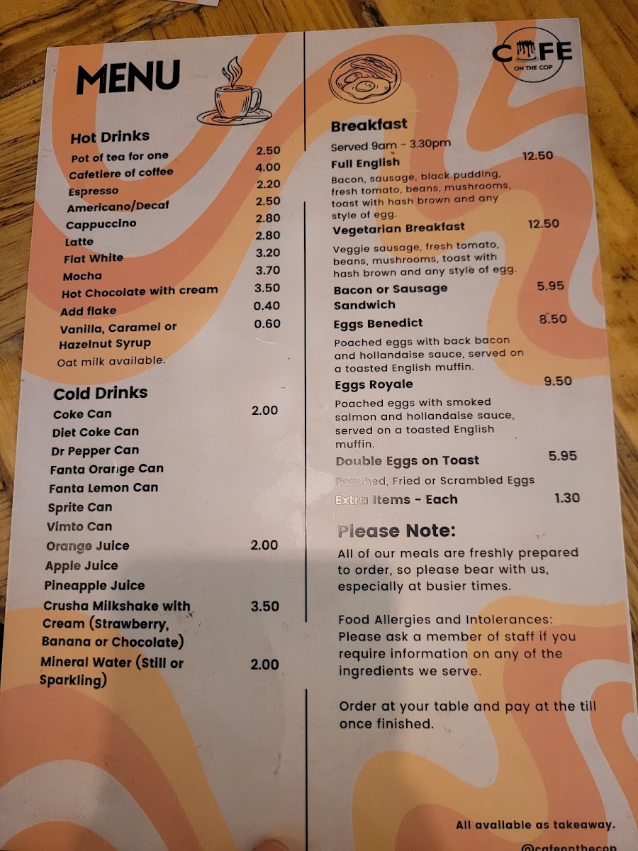 The cafe has quickly become a local favorite due to its delightful food, welcoming atmosphere, and excellent customer service. It’s a go-to spot for anyone looking for a quick bite, whether you’re in need of breakfast, lunch, or just a sweet treat. Whether you’re a local or visiting Shrewsbury, Cafe On The Cop is the perfect place to enjoy a delicious meal, sip on some freshly brewed coffee, and take in the cozy vibes.