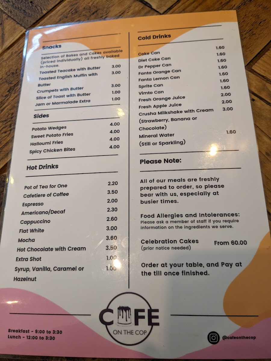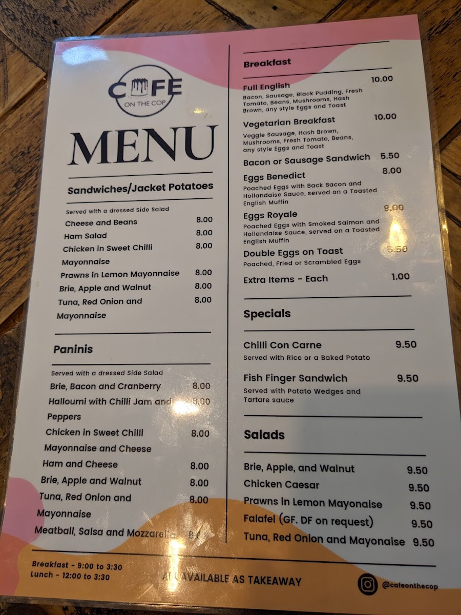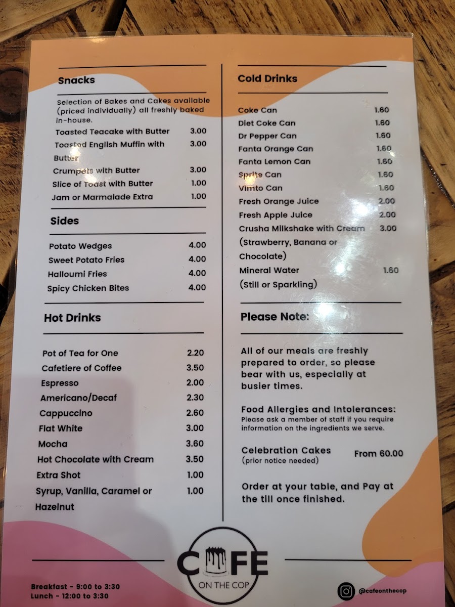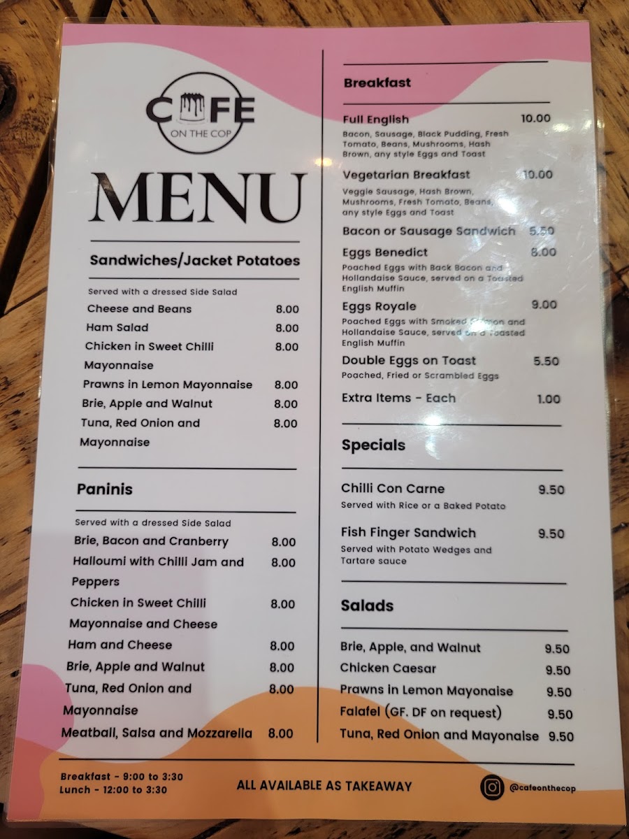 In comparison to other cafés in the area, Cafe On The Cop distinguishes itself through its balance of quality, variety, and charm. Whether you're after a quick coffee, a leisurely brunch, or a light lunch, this café delivers on all fronts.