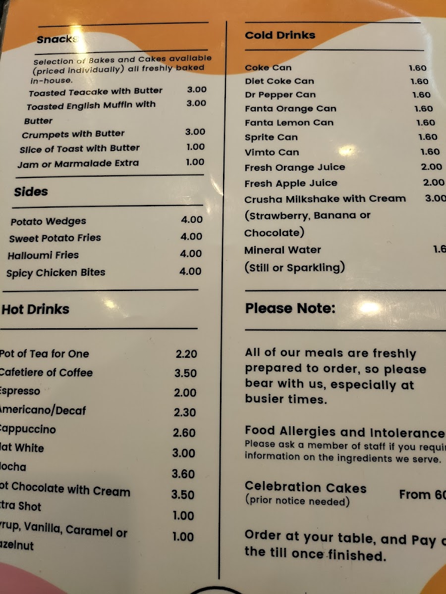 The café also excels in its beverage game-smooth barista-made coffee, creamy hot chocolate, and loose-leaf teas offer a comforting complement to any meal. Their cakes and scones, baked fresh daily, are the perfect indulgence with an afternoon brew. I highly recommend the Victoria sponge and the lemon drizzle for anyone with a sweet tooth.